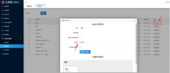 - 產品定價管理設置,產品類目是固定的,產品價格和數量和修改,操作步驟如下圖所示: