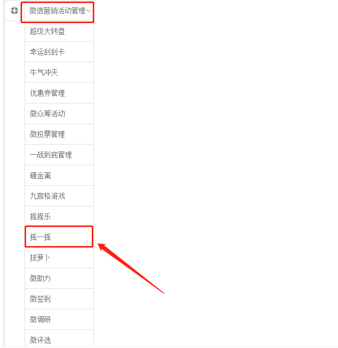 1、登錄智慧云碼系統(tǒng)后臺,找到左側(cè)微信營銷活動管理,進(jìn)去點擊搖一搖,點擊添加, 如下圖所示: