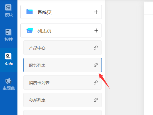 點擊頁面編輯右側的組件列表,將鼠標放在+圖標上,鼠標左鍵按住可進行上下拖動,達到快速調整組件排列的順序。如下圖所示: