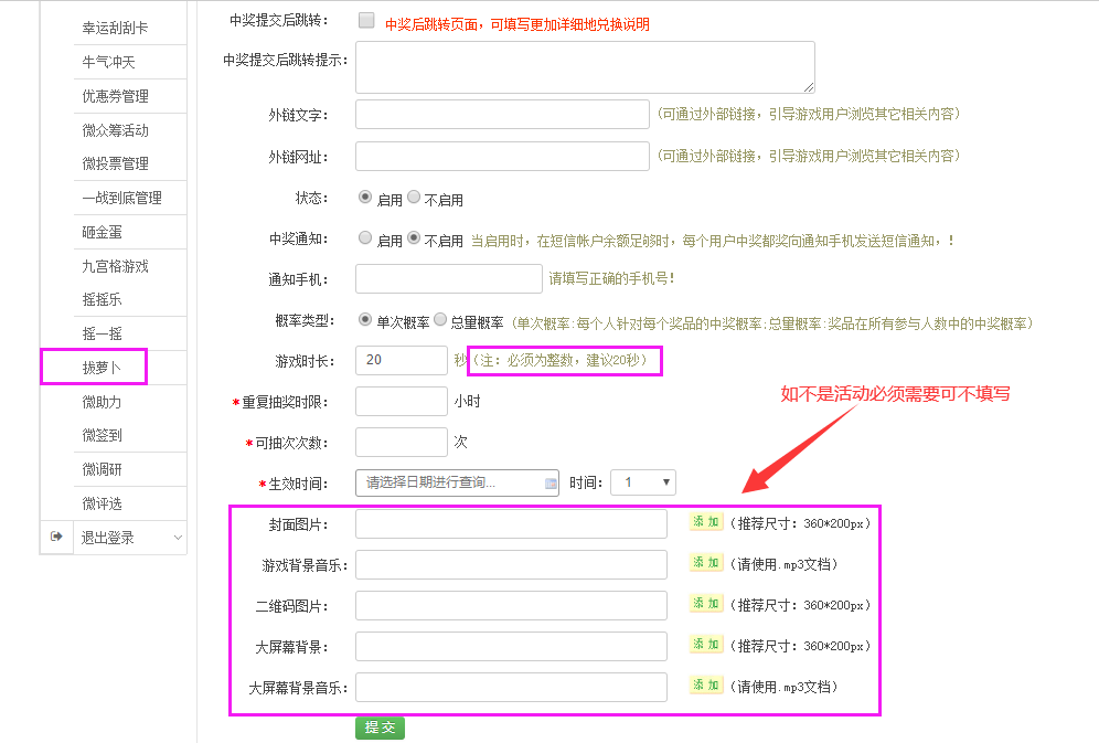 用戶填寫資料可以按自身需求選擇中獎后/中獎前,建議設(shè)置中獎后;