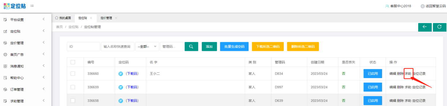 保存之后,可以在列表處獲取定位碼,也可以查看到定位記錄。如下圖所示: