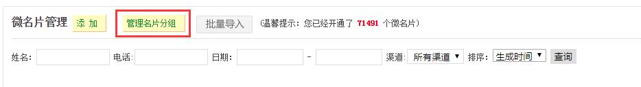 1、微名片新增分組功能。對于名下微名片數量眾多的用戶,可以使用分組功能,對名片進行管理。